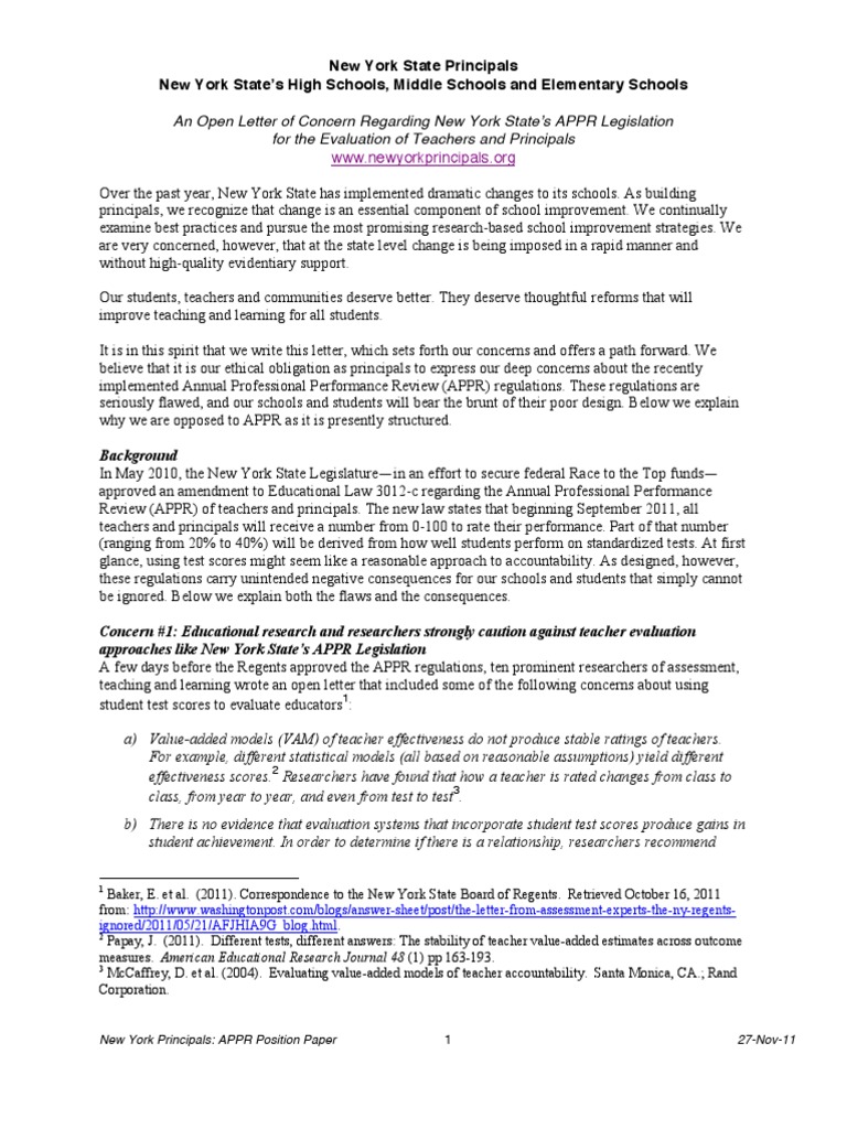 Appr Position Paper 27nov11 Pdf Education Reform Teachers